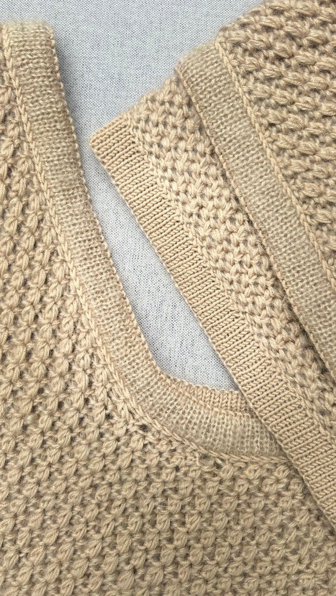 Dwustronny strukturalny wzór i połączenie dwóch włóczek dają niesamowity efekt.